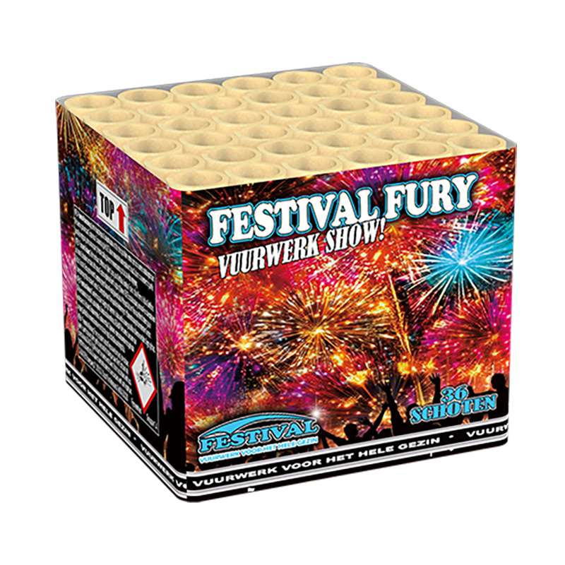 Nieuw in het assortiment: Festival Fury – een vrolijke 36-schots cake die perfect is voor het hele gezin! Deze cake biedt kleurrijke effecten en speelse shows, maar zonder harde knallen. Ideaal voor wie wil genieten van vuurwerk met jonge kinderen.